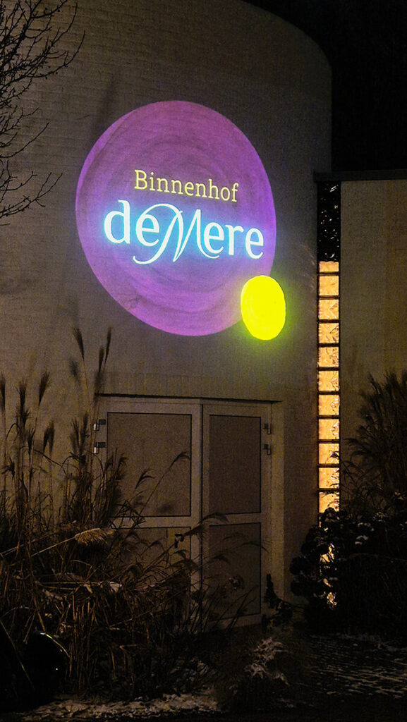 De nieuwe naam werd in de avond gepresenteerd op de ronde gevel van het gebouw en werd met veel enthousiasme ontvangen. Binnenhof de Mere verwijst naar de oorsprong van Boxmeer, dat in oude geschriften bekendstaat als Boc de Mere. Al in 1270 werd het gebied door Gelre in leen uitgegeven aan Jan Boc van Mere – een geschiedenis die nu opnieuw zichtbaar en voelbaar wordt.